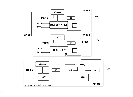 CP3000三级(多级)联网控制系统的主要特点是系统的各级可以双向传送实时视频和控制信号,同时在横向各分控之间也可以双向传送实时视频和控制信号,充分体现了系统的整体性和灵活性。当然,双向传输是要有授权的。另外,CP3000还可以实现多品牌矩阵系统捆绑联网,充分利用原有系统资源,节省工程费用,实现新旧系统的三级联网。